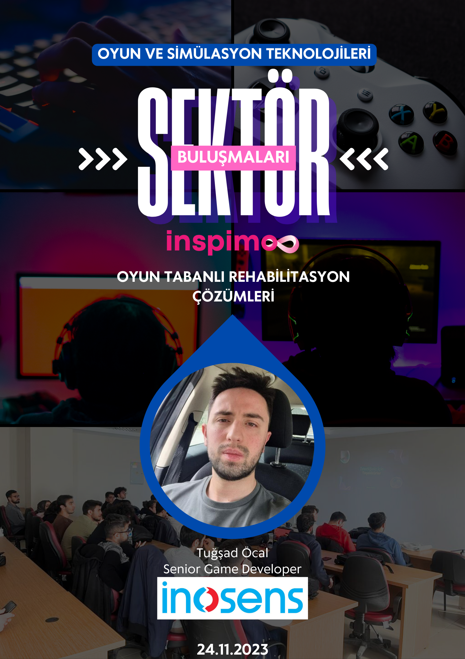 24.11.2023 tarihinde saat 10:00’da Teknokentte gerçekleştirilecek olan etkinliğimizde Tuğşad Öcal, Inosens firmasında Senior Game Developer olarak edindiği deneyimleri ve sektörde aktif olarak yer aldığı projeleri tanıtacak. Ayrıca, katılımcılarımızın sorularını yanıtlayacak.