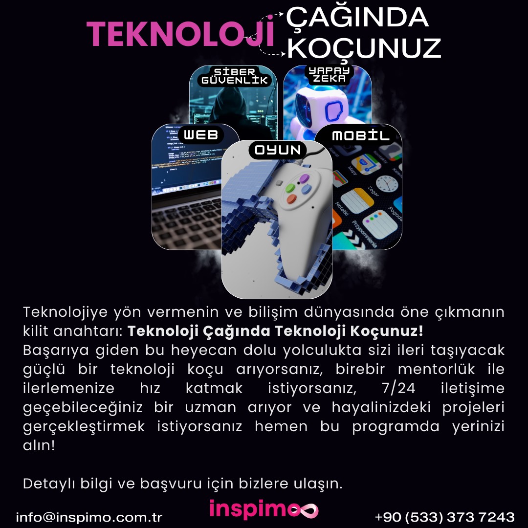 İnspimo, Yazılım koçluğu eğitim modelini online birebir mentörlük modelinde uzaktan eğitim modeline taşıyor. İlgilenenler bilgi almak için görseldeki numaradan iletişim sağlayabilir.